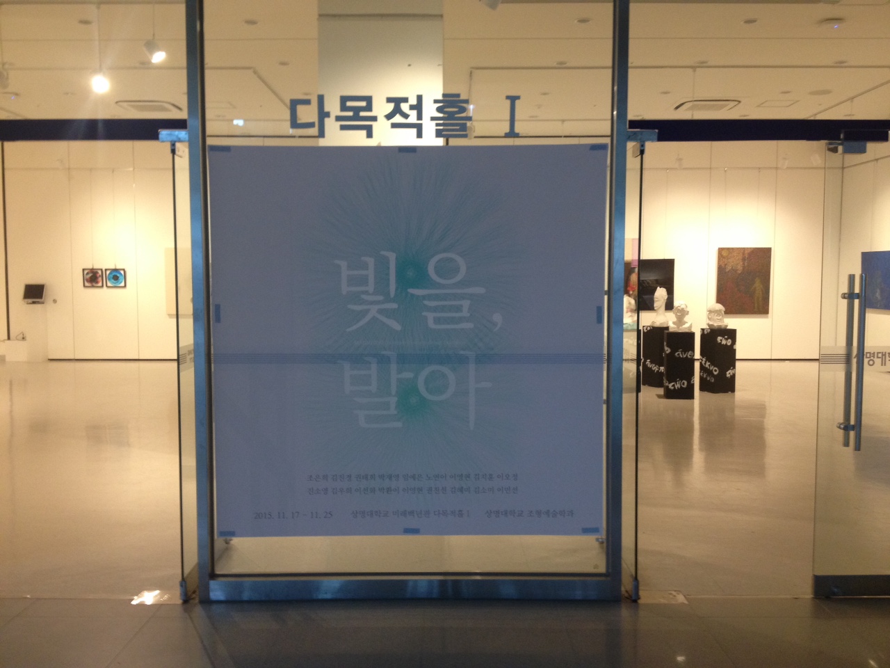 "빛을,발아"展 *일시: 2015.11.16(월)~11.27(금) *장소: 미래백년관 다목적홀 B1층. *전시참여자: 김진경, 박재영, 김지훈, 노연이, 김소미, 김민선 외 8 명.