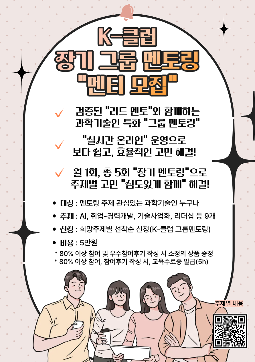 [K-클럽 과학기술인 장기 그룹 멘토링 참가자(멘티) 모집]