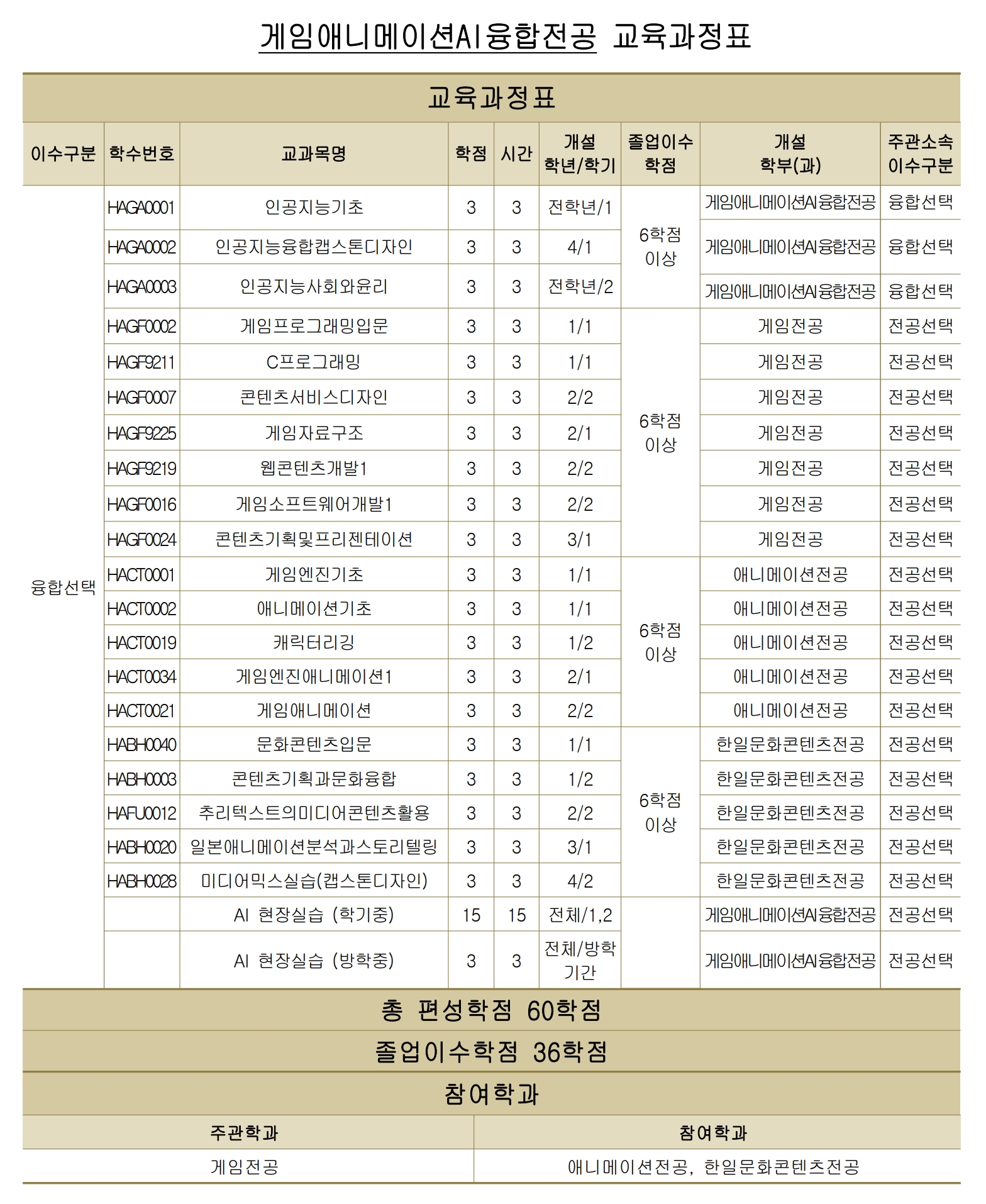 게임애니메이션AI융합전공(한일문화콘텐츠전공 참여학과)