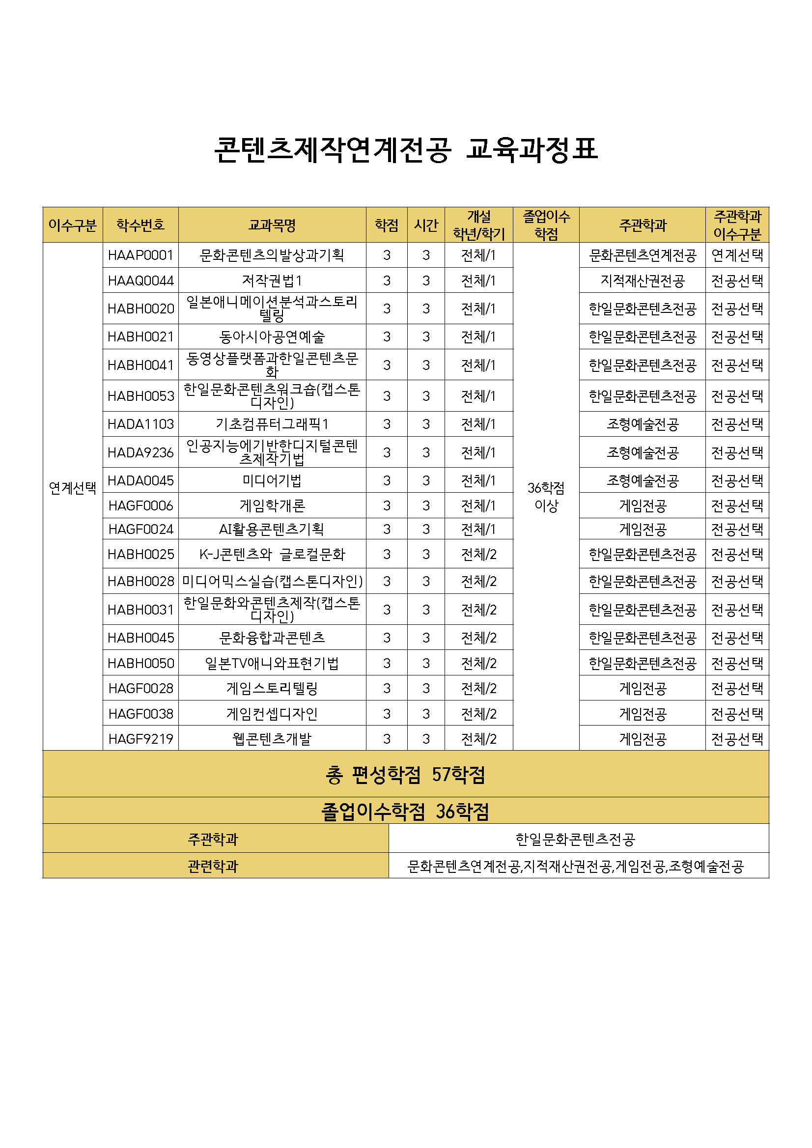 콘텐츠제작연계전공(한일문화콘텐츠전공 주관학과)
